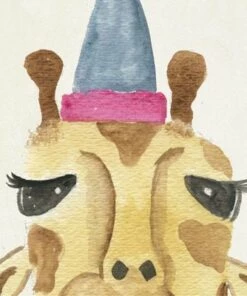 Brand new 😀 Antique Curiosities Giraffe with Party Hat Small Framed Wall Art Giraffe 😍