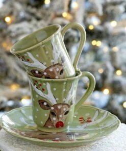 Coupon 🛒 Casafina 🎅 Christmas Deer Friends 12 oz Set of 4 Mugs White ✔️