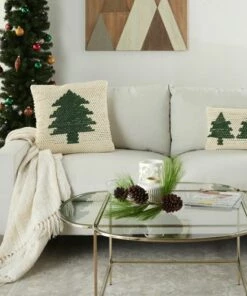 Best reviews of ✔️ Mina Victory 🎅 Christmas Tree Hook Decorative Square Throw Pillow Ivory/Gray ⭐