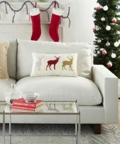 Best Sale ๐ Mina Victory โ Christmas Rhinestone Reindeer Decorative Throw Pillow ๐