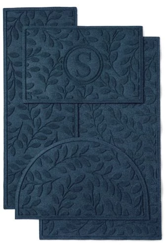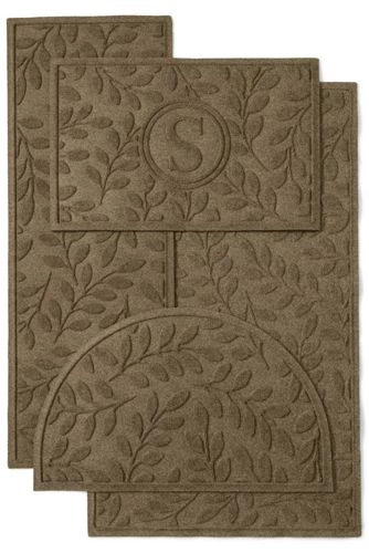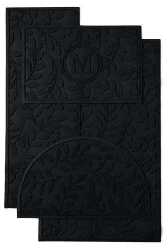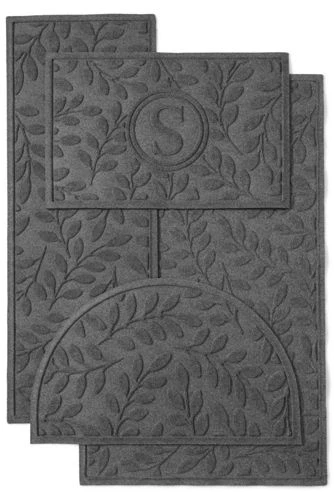 Here’s a commercial grade, hard-working, long-lasting solution for your threshold. The 24-oz. antistatic, 100% PET surface (made with up to 94% recycled content) will not mold or mildew, while the rubber border keeps dirt and water off your floor. With nonskid rubber backing, it’s certified slip resistant by the National Floor Safety Institute. Personalize with a single initial. Please allow 10-14 business days for delivery.Standard: 24″ x 34″. Large: 35″ x 59″. Runner: 22″ x 60″, Half Round: 24″ x 39″