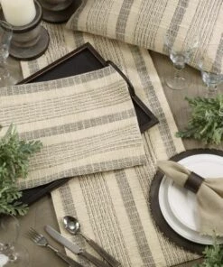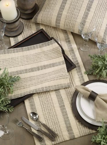 No matter the occasion, add a stylish, rustic touch to your table with this beautiful woven striped table runner. Made with 100% cotton for long lasting use, this long table runner will quickly become your go-to piece for every occasion. Pair with matching table mats and solid color tableware.
