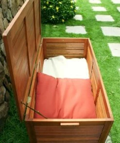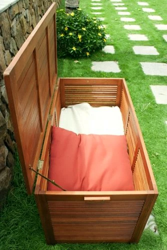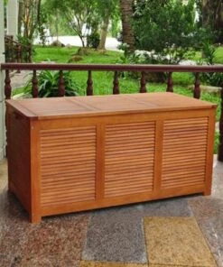 This cushion storage box will make the perfect addition to your patio or backyard. The top panel uses a water-proof silicone sealant to shield the interior contents from rain. Each panel features a shutter slat design, which is very stylish and eye-catching. The interior is spacious and ideal for protecting your outdoor cushions from fading or soaking in the rain when not in use. Made entirely from Eucalyptus hardwood, this storage bench will grace your patio for a long time. Easy assembly; hardware and instructions included.