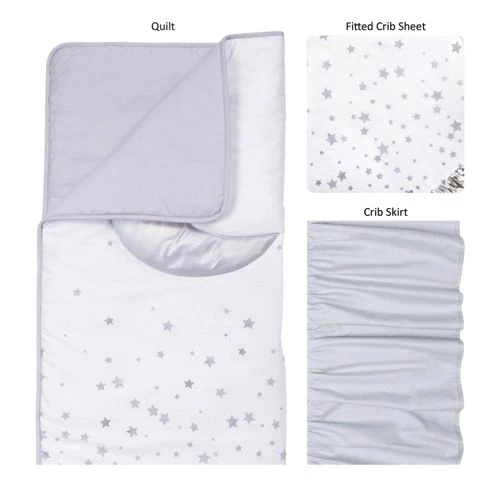 - Set includes: Quilt, Skirt and Fitted Crib Sheet