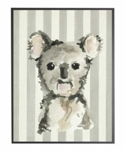 Best Sale ๐Ÿ”ฅ Antique Curiosities Koala with Stripes Small Framed Wall Art Gray โญ