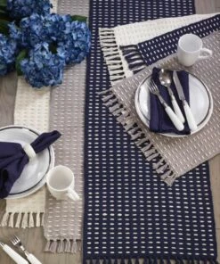 The Dashed Woven Cotton Placemats bring an original touch to your tabletop. Providing your décor with texture and warmth, this lovely set is ideal for any occasion, from garden lunches to guest dinners. Pair with matching runner and solid color tableware.