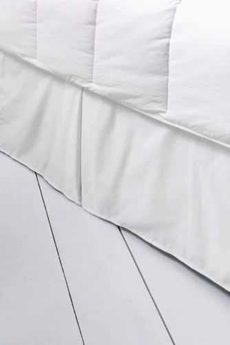 Layer on the luxury with pure cotton bedskirt that goes from the dryer to the bed without a wrinkle. 100% Supima® cotton — the top 3% of cotton grown in the USA — is treated at a fiber level with a no-wrinkle finish. The fabric feels silky soft and stays looking pressed right from the dryer for up to 50 launderings. Bedskirt has 15 inch drop with split corners to keep bed frame hidden.