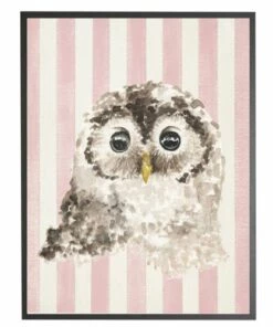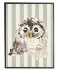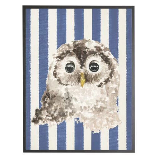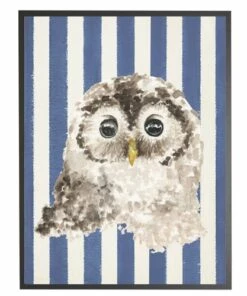 Budget ๐Ÿฅฐ Antique Curiosities Baby Owl with Stripes Small Framed Wall Art Blue ๐ŸŽ