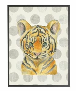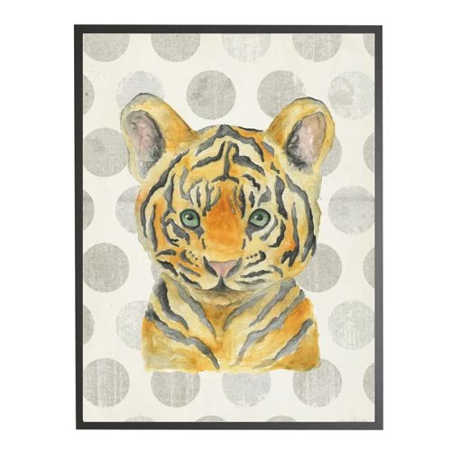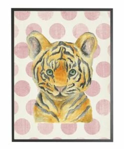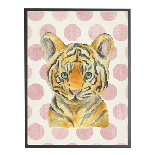 Budget ๐Ÿคฉ Antique Curiosities Baby Tiger with Polka Dots Small Framed Wall Art Pink โœ”๏ธ