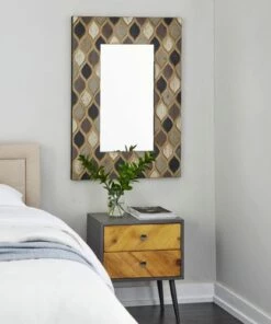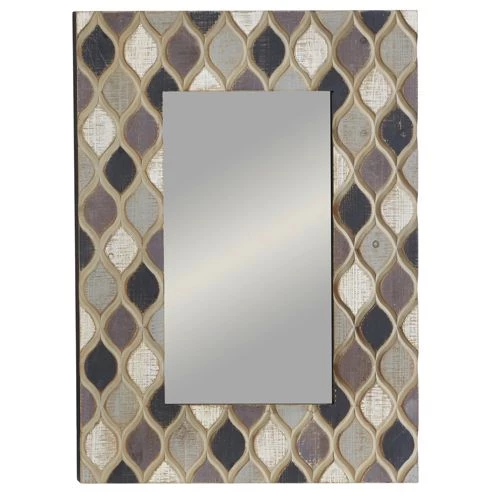 - This long wall mirror features a wide frame and lively pattern with pointed ovals