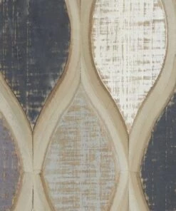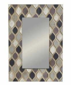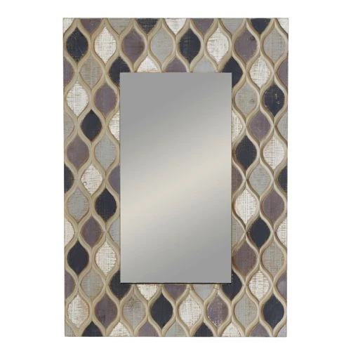 - This wood wall mirror has beige finish with soft shades of white, purple, gray
