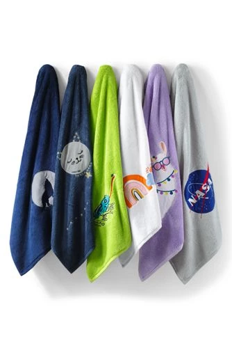 Bath time is fun on most days, but adding this takes it to a whole new level. Roomy 27″ x 55″ terry towel becomes the backdrop to colorful appliqués. Personalize with your child’s name or add a monogram to make bath time extra special.