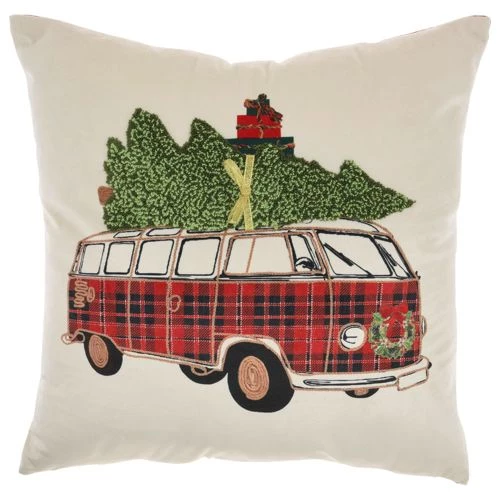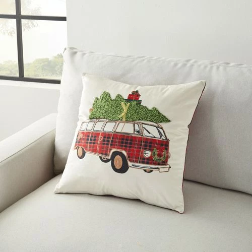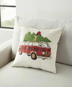 - Vintage holiday throw pillow with embroidered accents