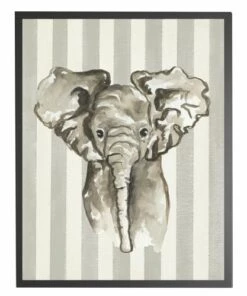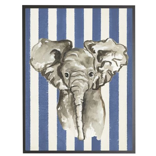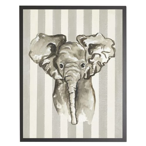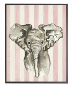 Buy 🥰 Antique Curiosities Baby Elephant with Stripes Small Framed Wall Art Pink ❤️