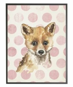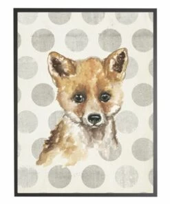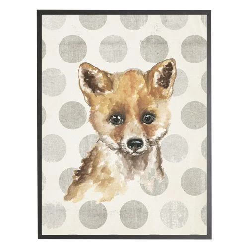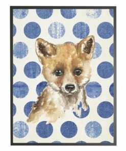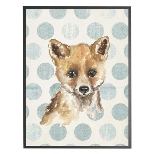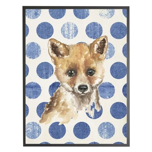 Cheap 👏 Antique Curiosities Baby Fox with Polka Dots Small Framed Wall Art Navy 🤩