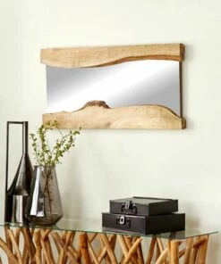 - These elegant live edge mirrors feature a naturally brown wooden finish
