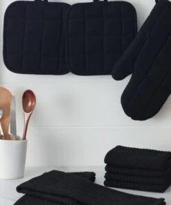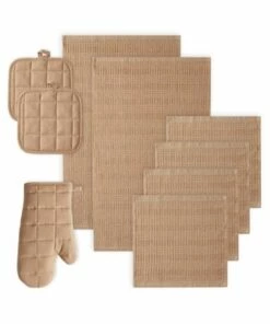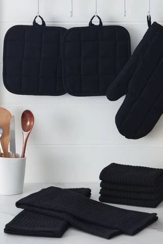 - Set includes 2 kitchen towels, 2 pot holders, 1 oven mitt, and 4 dishcloths