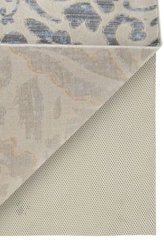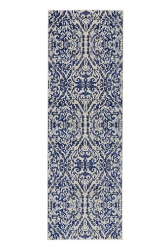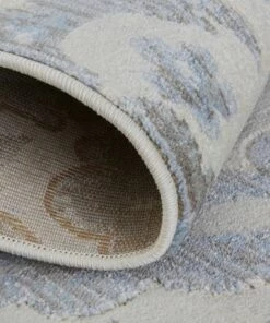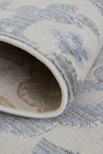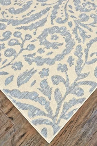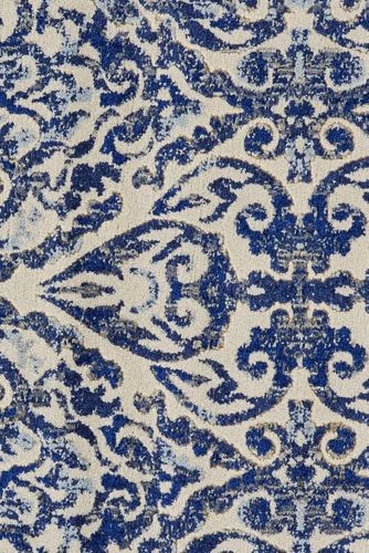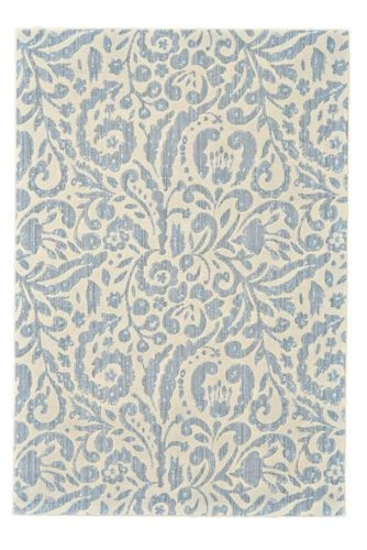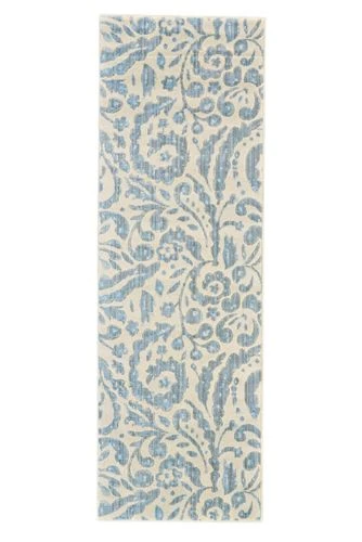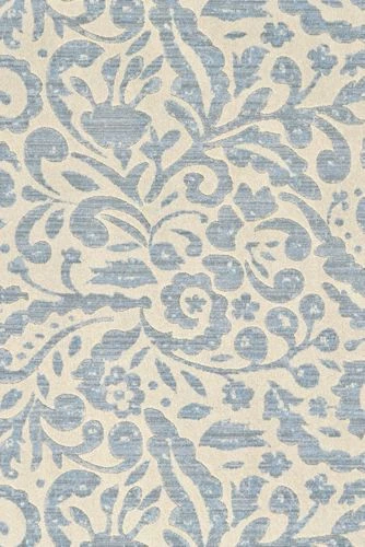 - Features an ornamental scrolling motif on an ivory backdrop with bold turquoise design