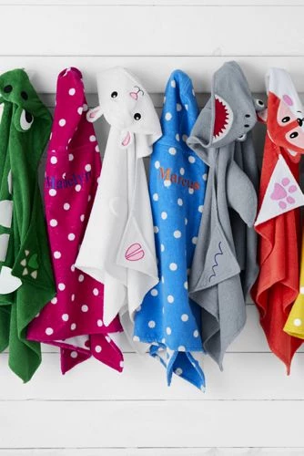 What’s better for bath time — or trips to the beach — than a cuddly hooded towel embroidered and appliquéd with a fun design? It’s sized so your little ones can really wrap up and go from wet and cold to dry and cozy in nothing flat. 50″Wx27″H.