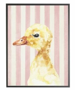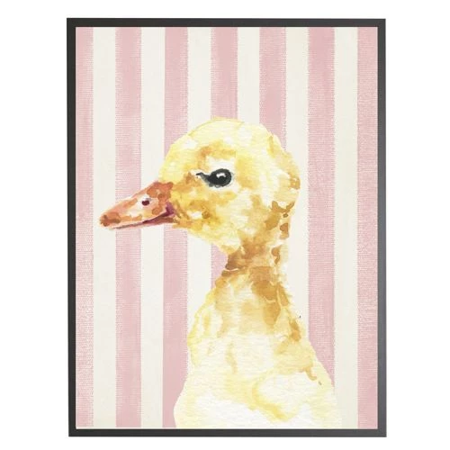 Cheapest 👍 Antique Curiosities Baby Duck with Stripes Small Framed Wall Art Pink 🔥