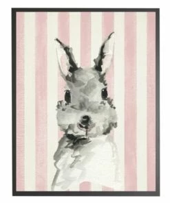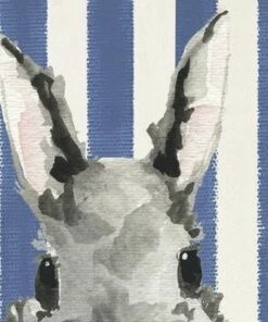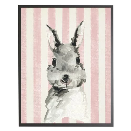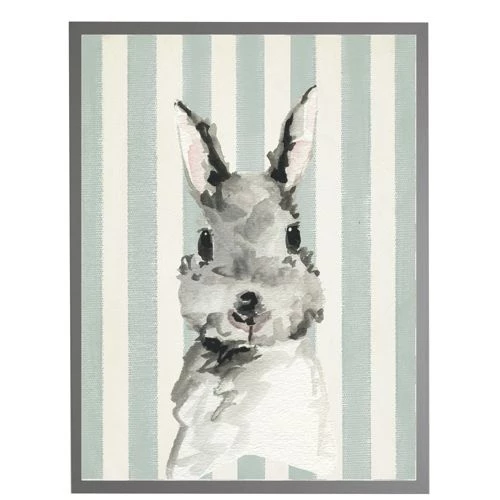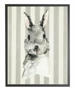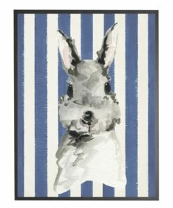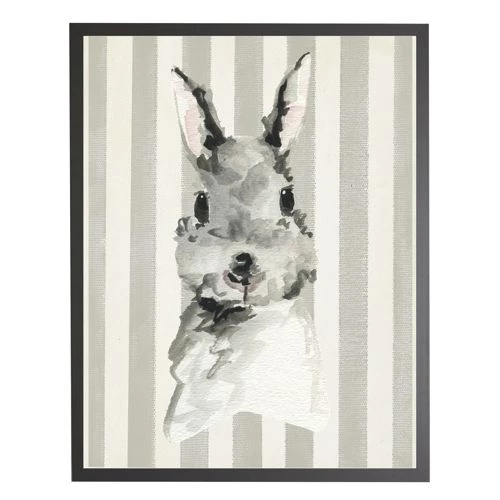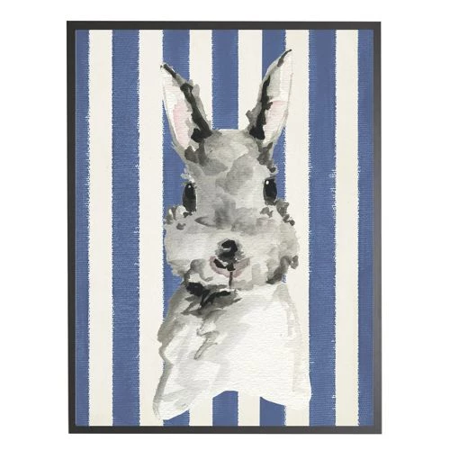 Cheapest ⭐ Antique Curiosities Gray Bunny with Stripes Small Framed Wall Art Navy 🤩
