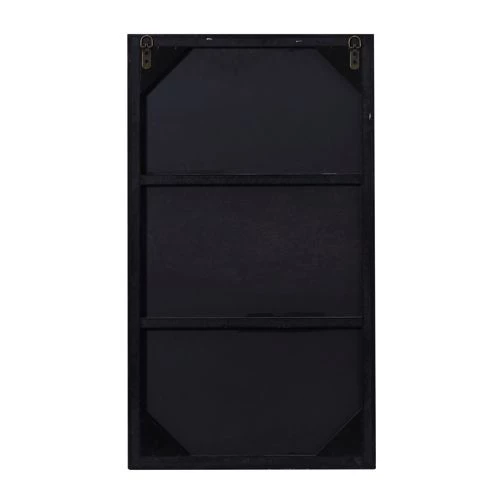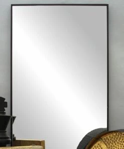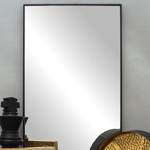 - This rectangular wall mirror comes with a thin black-finished frame