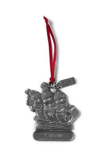 A local Delavan, Wisconsin company uses proven old world techniques to create these elegant additions to your Christmas tree. The ornaments are handcrafted to the highest level of quality and intricately detailed, with a 100% pewter finish. Comes with a pewter “2021” tag and a red satin hanging ribbon. We’ll engrave up to 10 letters on the Ornament itself.