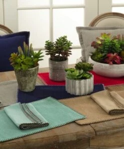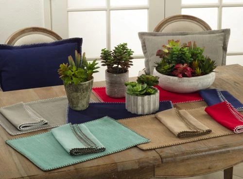 This lovely set of Whip Stitched Design Placemats helps set the perfect backdrop for each and every one of your place settings. The design features a solid color, which makes the placemats easy to pair with a wide range of tableware. If you want to create a coordinated look, then pair with matching table runner.