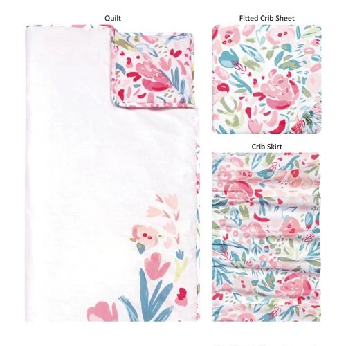 - Set includes: Quilt, Crib Skirt and Fitted Crib Sheet