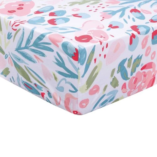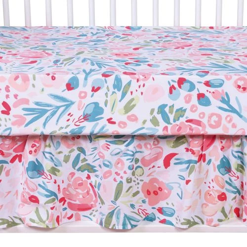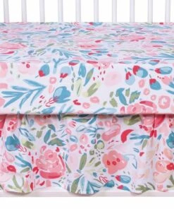 - Ruffled floral print crib skirt fits standard crib 28 in x 52 in with 13-inch drop.