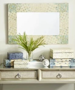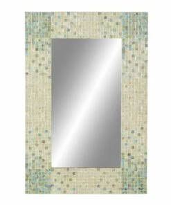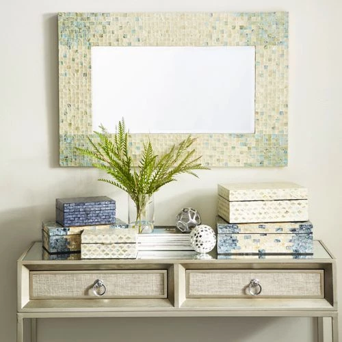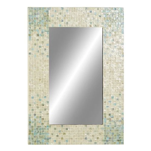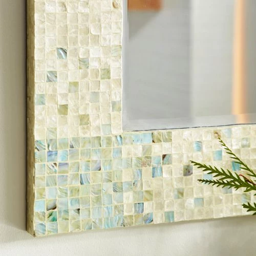 - This extra large mirror for wall features a rectangular shape and a stunning mosaic-patterned mussel shell inlay frame