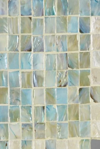 - This shell wall mirror is made of real mussel shells and MDF wood Creamy off-white shells with aqua shells in the corners with opalescent finishes