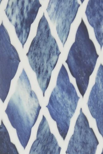 - This decorative blue wall mirror features a tile mosaic inlay of animal bone fragments