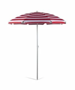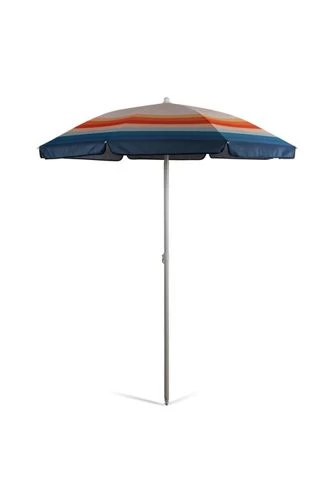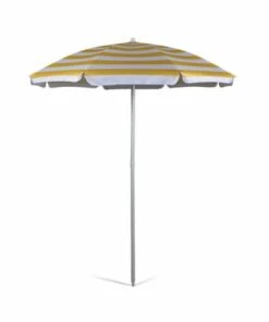 - Two-piece, 1.25″ diameter steel pole with 155-degree tilt feature and pointed end for easier penetration into sand or grass