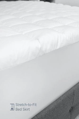 - Stretch to fit bed skirt fits mattresses up to 18-inches
