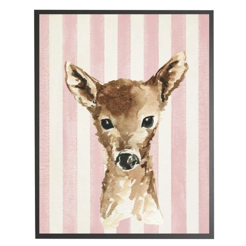 New ๐Ÿงจ Antique Curiosities Baby Deer with Stripes Small Framed Wall Art Pink ๐Ÿ›’