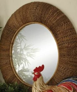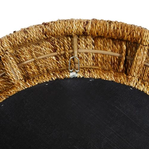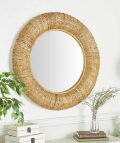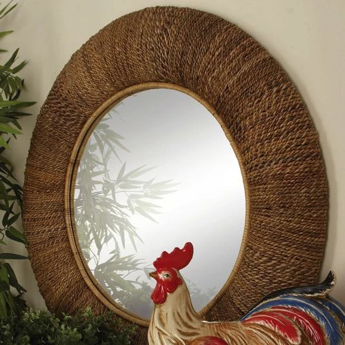 - This round coastal style mirror is made from rattan materials