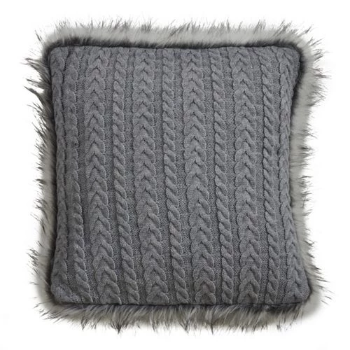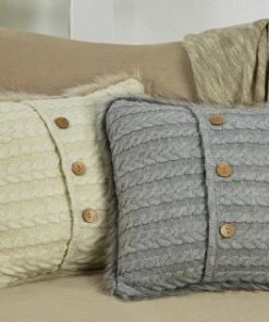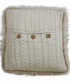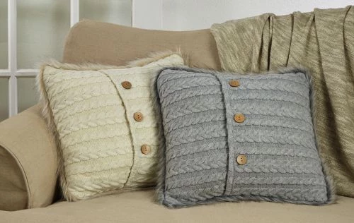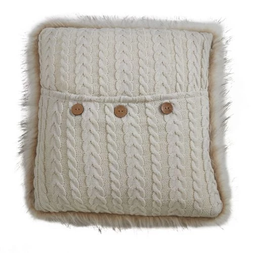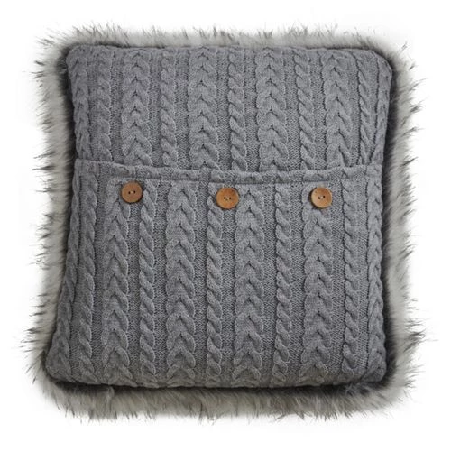 Let this cute faux fur button knit pillow hug you and embrace its softness with the knitter pattern and faux fur design. The three wooden buttons add a playful touch to the style. The monochromatic design makes it very easy to match or blend.
