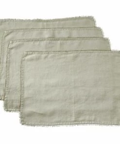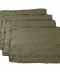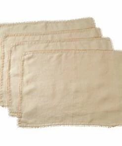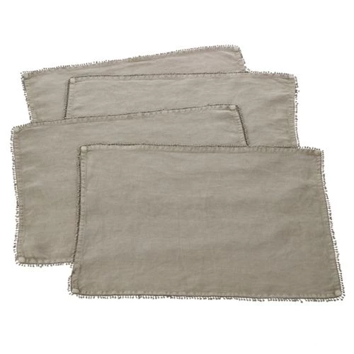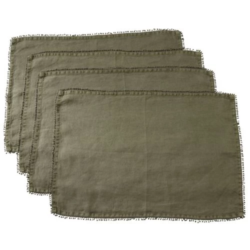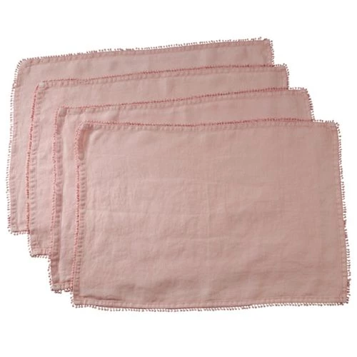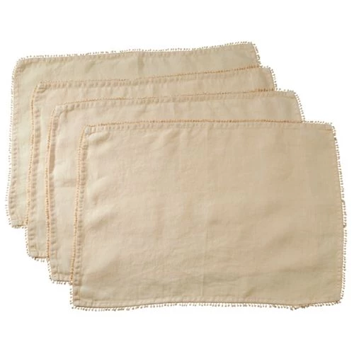 Linen Placemats With Pompom Trim (Set of 4)