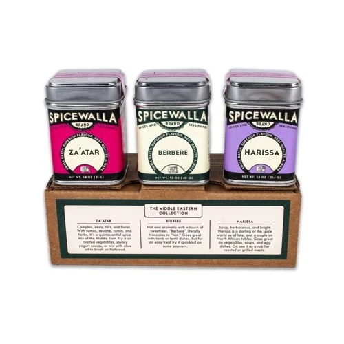- Middle Eastern Collection – 3 Pack: Za’atar-1.6oz; Berbere- 1.3oz; Harissa- 1.6oz