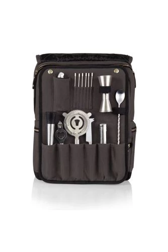 - Includes 16 essential bar tools, removable bar tool organizer, pocket for business cards and phone