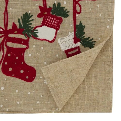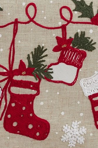 - 80% polyester/20% linen. Machine wash, delicate cycle, do not bleach, hang dry. Imported