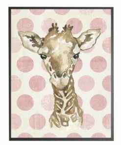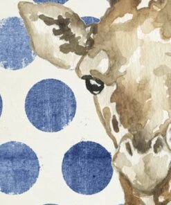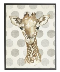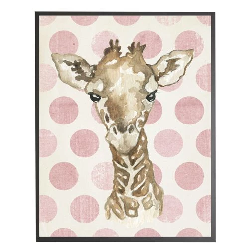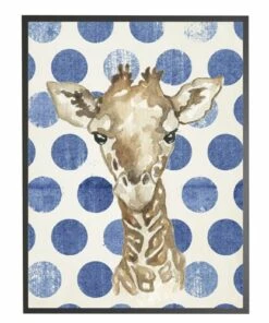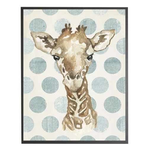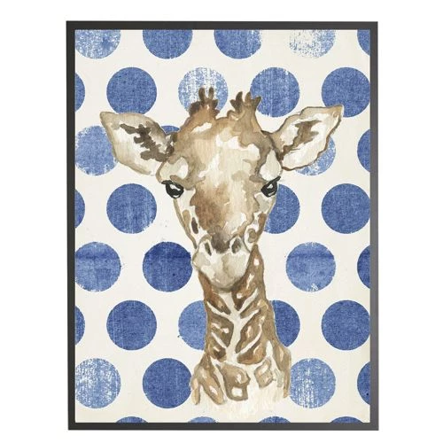 Promo 🔥 Antique Curiosities Baby Giraffe with Polka Dots Small Framed Wall Art Navy 😉