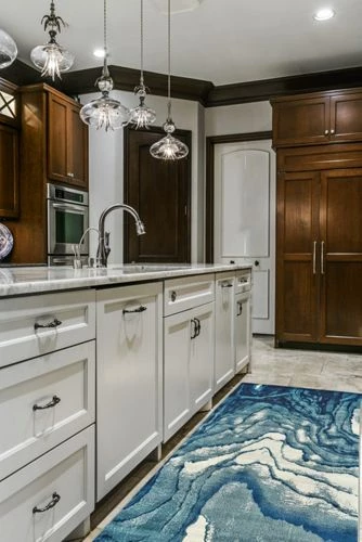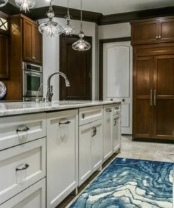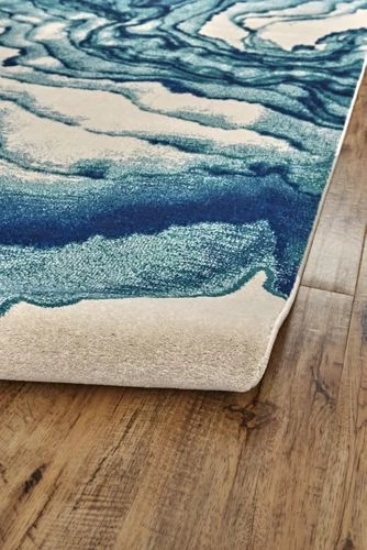 - Contemporary and transitional designs in distressed blues, yellow, and green combinations