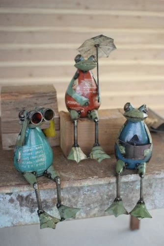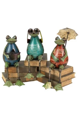 - Approximate dimensions: Frog with Umbrella 9.5″ x 7.25″ x 14.75″; Frog with Binoculars 9.5″ x 6.5″ x 14.75″; Frog with Ship 9.5″ x 6.5″ x 13″