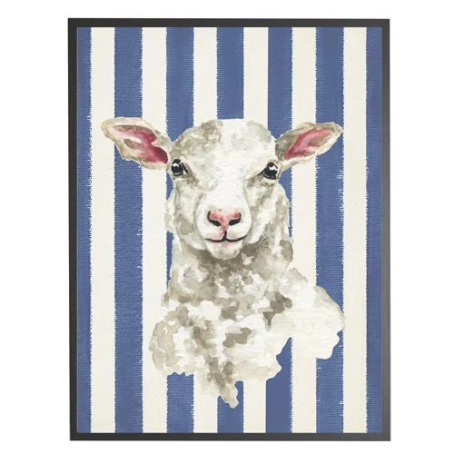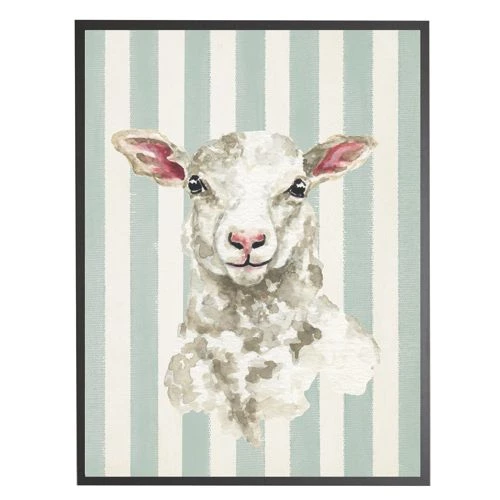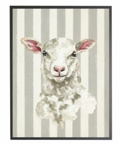 Top 10 🌟 Antique Curiosities Baby Lamb with Stripes Small Framed Wall Art Gray ⭐