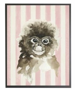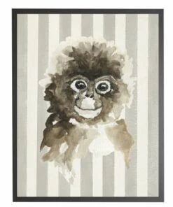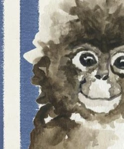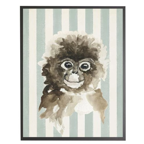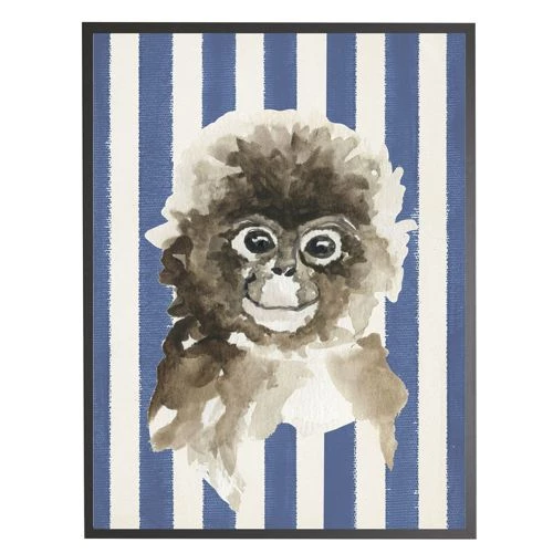 Top 10 🔥 Antique Curiosities Baby Monkey with Stripes Small Framed Wall Art Blue ✔️