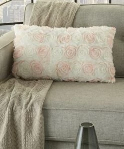 - Faux Fur Floral Throw Pillow