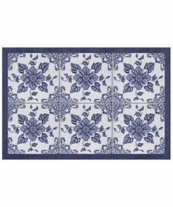Wholesale โค๏ธ Bungalow Flooring Skid Resistant Floral Floor Mat Blue ๐Ÿ˜