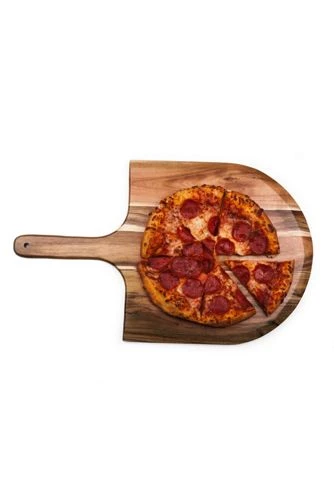 - Flat paddle with beveled edge, used to transfer pizza in and out of oven
